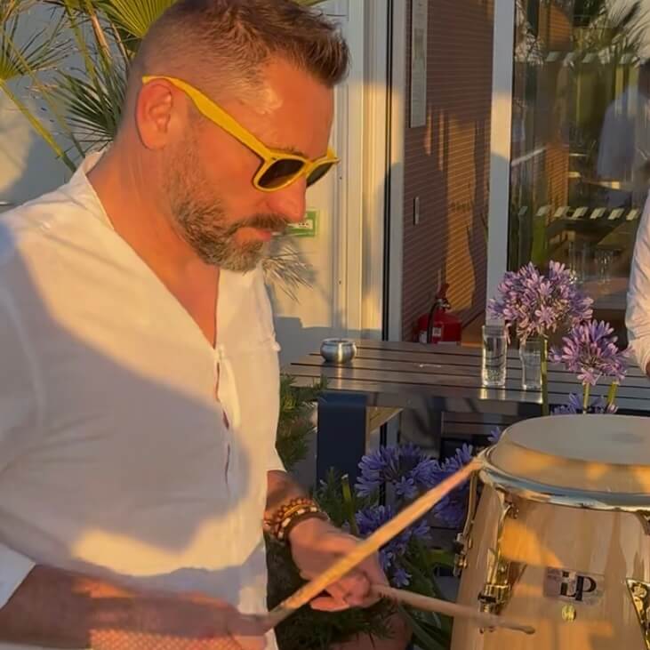 Batteur de l’Orchestre CITADELLE, il fait vibrer les rythmes avec une énergie tellurique, et avec Candela Mi Son, il se laisse emporter par les cadences chaleureuses de la salsa, comme un voyage au cœur des Caraïbes.